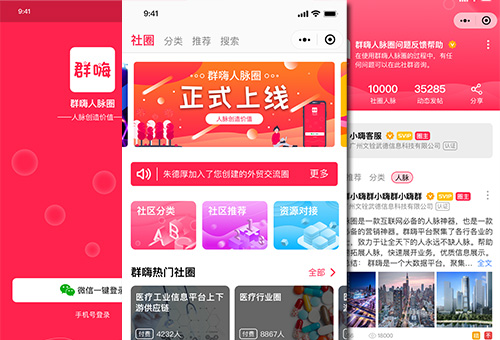 人脈創(chuàng)造價(jià)值---至力于微信端的社交、社圈平臺(tái),為各行業(yè)提供一個(gè)資源整合交流平臺(tái)。